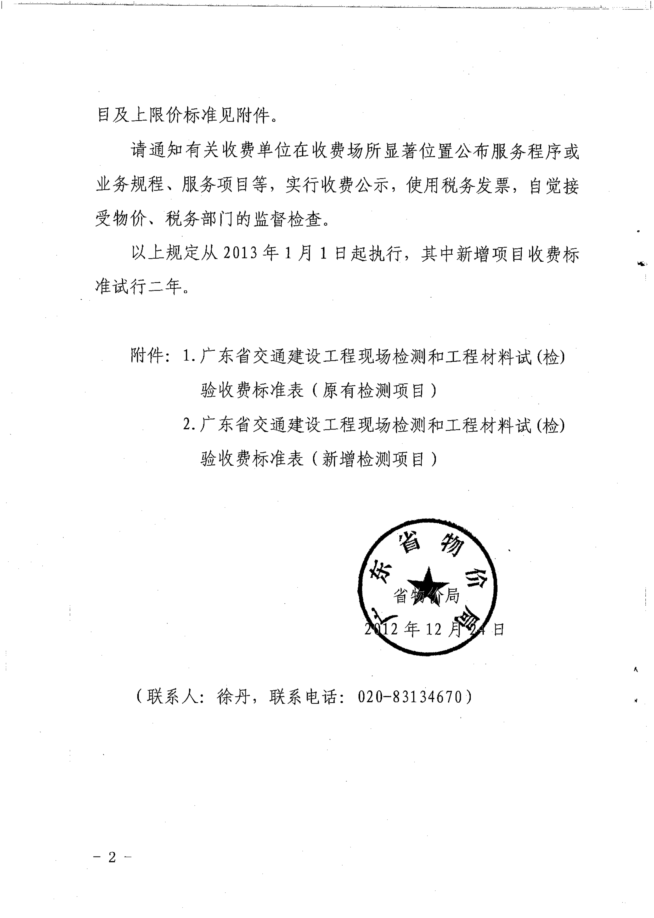 粵價函【2012】1490號 省物價局關(guān)于交通建設(shè)工程現(xiàn)場檢測和工程材料試(檢)驗收費問題