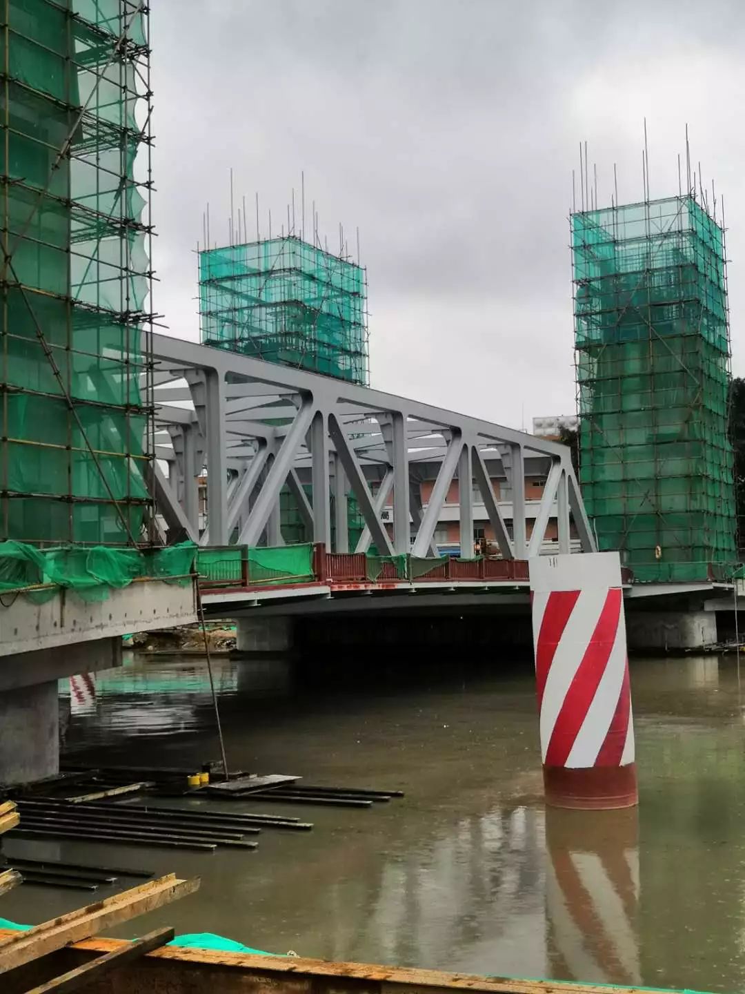 我司于2019年4月30日順利完成了廣州市番禺區(qū)光明大橋稱重測試項目。光明大橋位于廣州市番禺區(qū),橋梁全長115.857米,設(shè)計為開啟橋,上部結(jié)構(gòu)為下承式鋼桁梁。為了掌握開啟段橋梁的準確重量,采用千斤頂頂升法對開啟橋進行稱重測試。